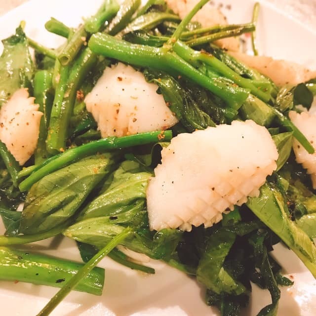 柔らかいイカと空芯菜の食感は最高です!!!