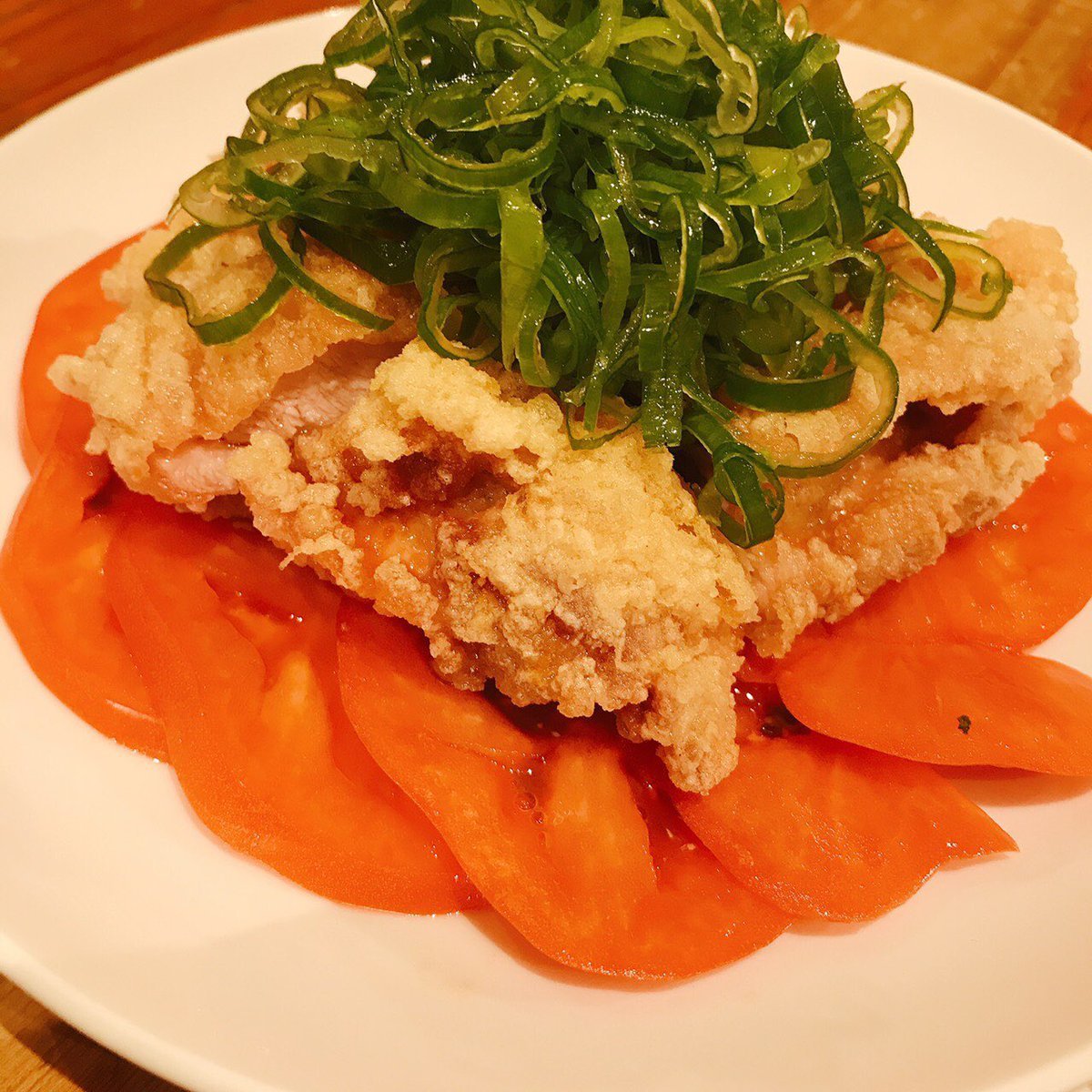 トマトを効かした油淋鶏がうまい!!